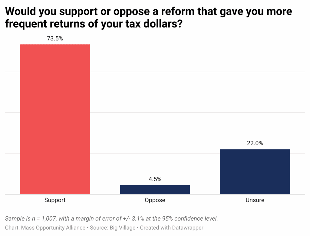 74 percent of respondents support a revised revenue cap to trigger more taxpayer refunds, including 67 percent of respondents with annual household incomes under $50,000.