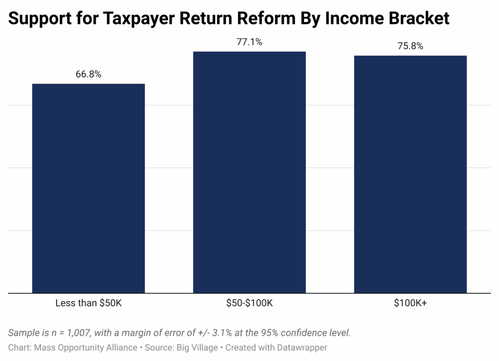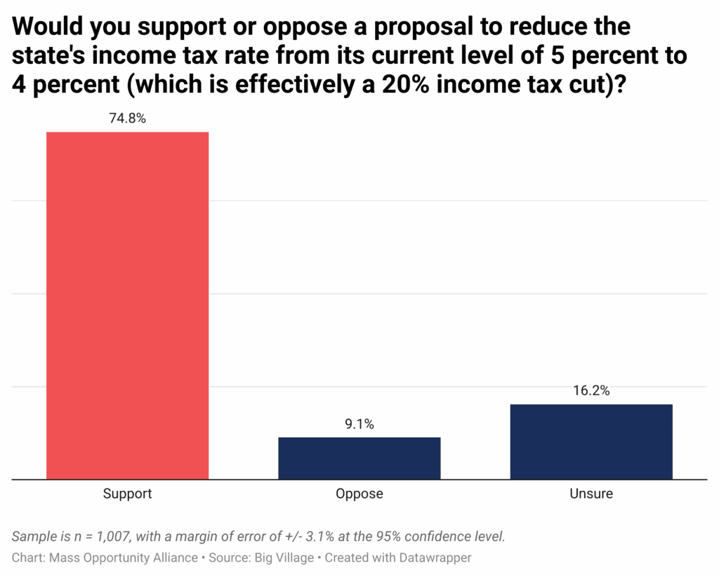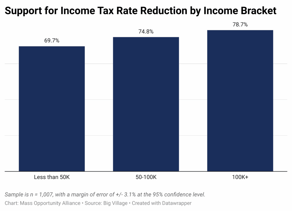 A new MOA poll of 1,007 registered Massachusetts voters found substantial public support for the policies outlined in these proposals across income brackets and party lines. The survey, conducted July 16-25 by research firm Big Village, has a margin of error of ±3.1 percentage points. (View the polling, including a demographic breakdown, here.)