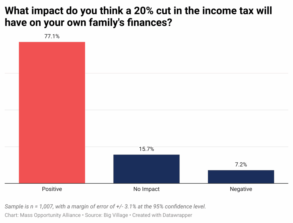 75 percent of voters support the income tax cut, with 77 percent saying it will have a positive impact on their own family’s finances.